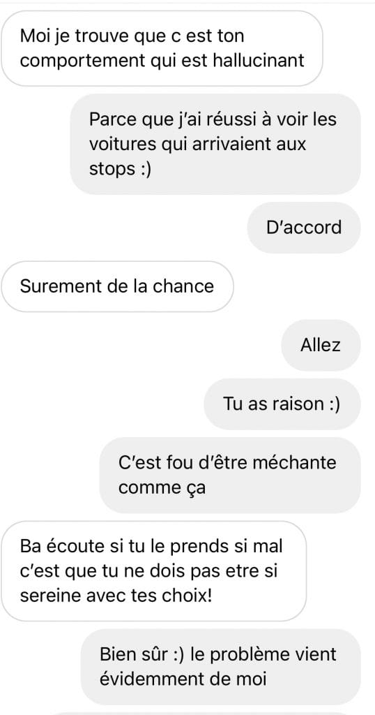 Comme je me serait énervée, je sais pas comment t’as fait pour rester sereine.